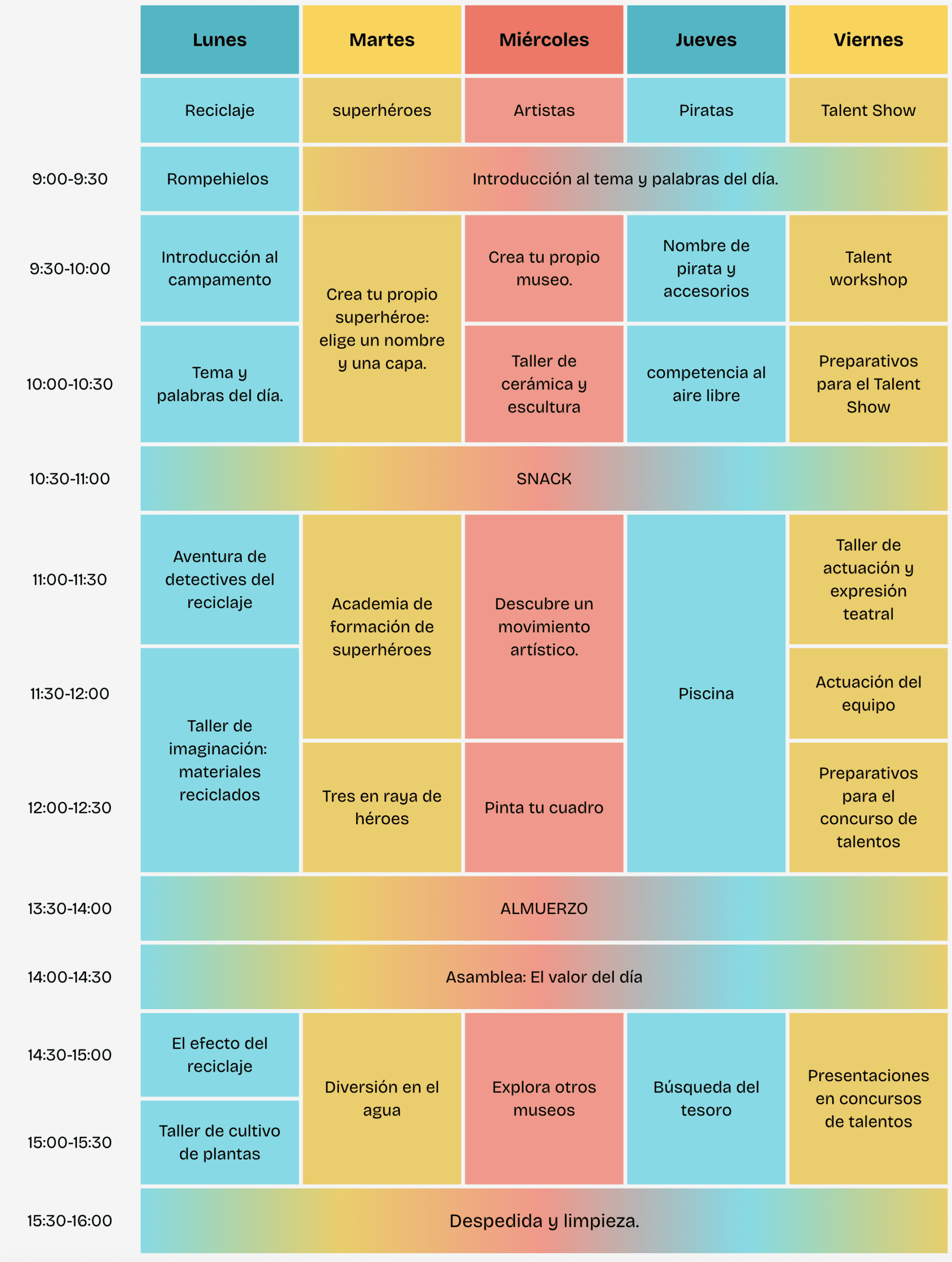 Nos dedicamos a ofrecer un programa de inmersión lingüística de alta calidad, con un horario dinámico, activo y lleno de actividades divertidas y educativas.